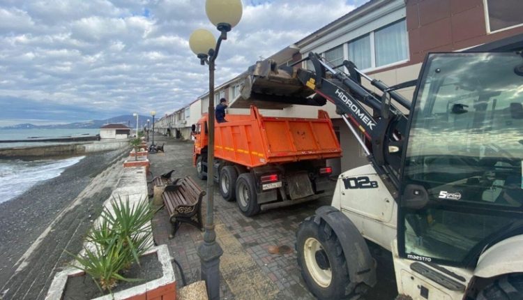 Устранение последствий непогоды на набережной Сочи